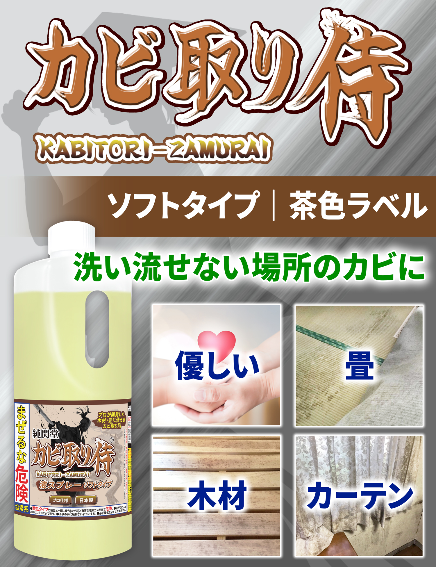 カビ取り侍ソフトタイプ(木材・畳向け/茶色ラベル)1㎏ / 洗い流せない場所でも使える優しいカビ取り剤