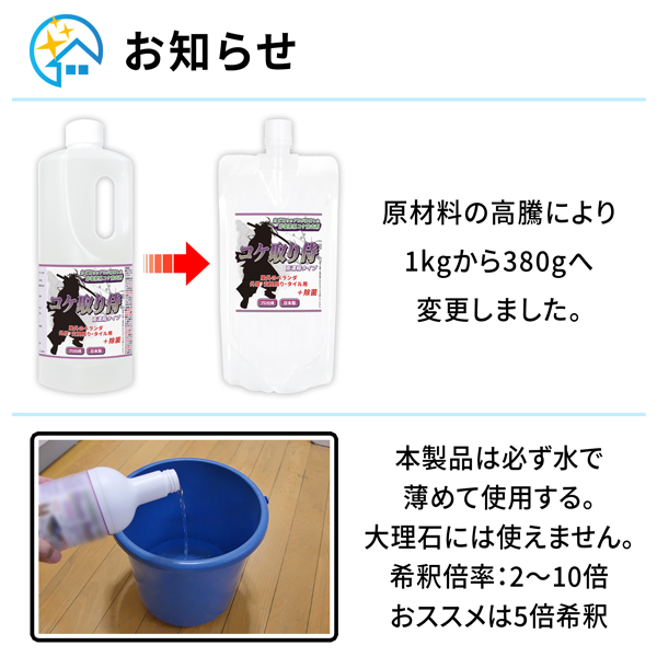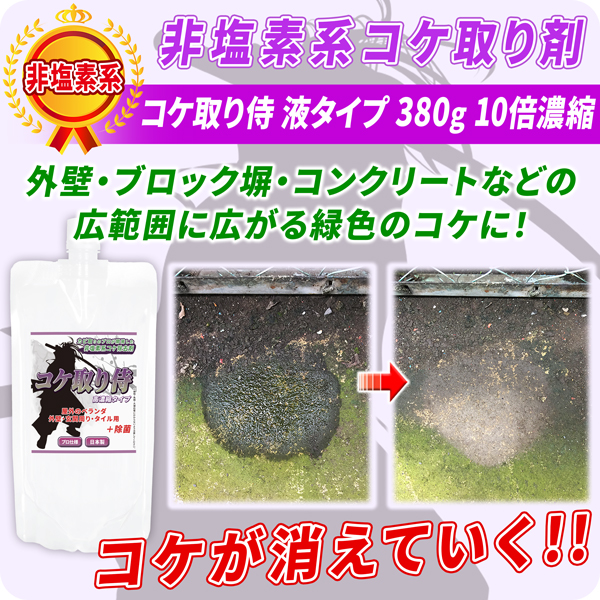 【送料無料/日付指定不可】コケ取り侍 380g 濃縮タイプ 液体 / 非塩素系のコケ取り剤で強力に苔を除去 / ポスト投函便