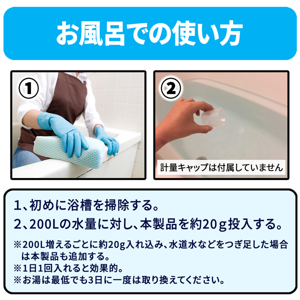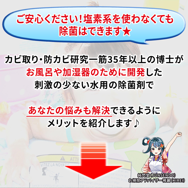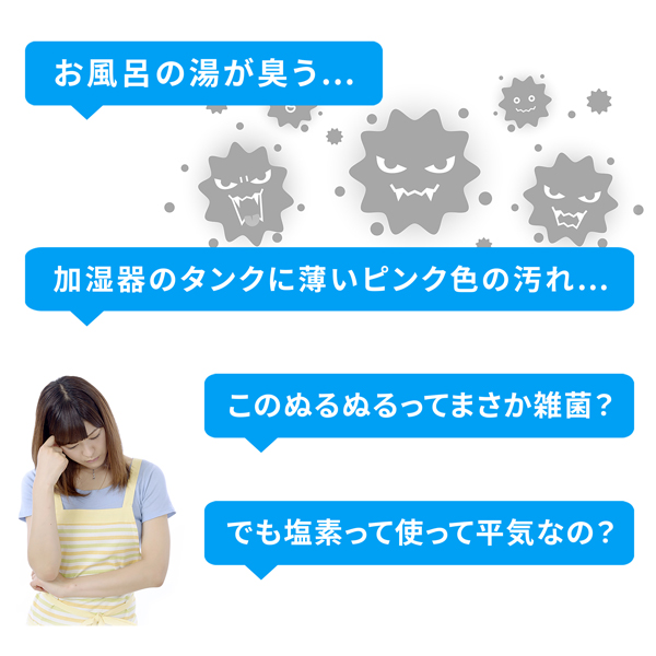 ※入浴施設の温泉に入れる塩素剤のような役割をします。